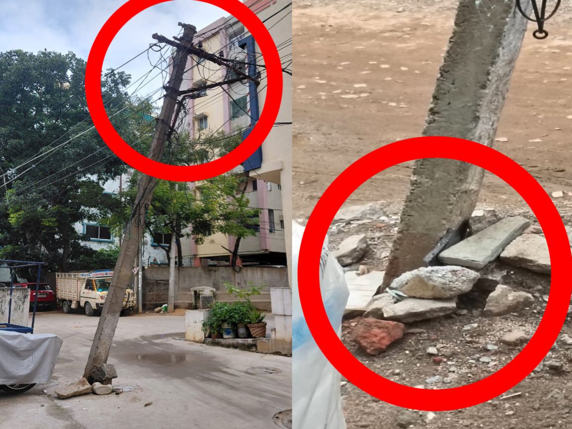 Home తెలంగాణ ప్రమాదకరంగా మారిన విద్యుత్ స్తంభం.. ప్రమానష్టం జరగకముందే అధికారులు స్పందించాలని డిమాండ్