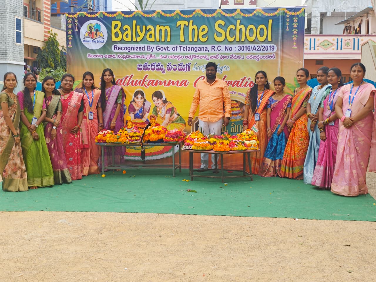 TGN NEWS (మనోహరాబాద్) : మండల పరిధిలోని దండుపల్లి గ్రామంలో గల బాల్యం ద స్కూల్ పాఠశాలలో శనివారం బతుకమ్మ సంబరాలు కోలాహలంగా సాగాయి. ఈ సందర్భంగా మహిళా ఉపాధ్యాయులు, విద్యార్థుల తల్లులు, విద్యార్థినులు రంగురంగుల పూలతో బతుకమ్మలను తయారుచేశారు.ఆటపాటలతో విద్యార్థులు తల్లిదండ్రులు ఘనంగా నిర్వహించారు. ఈ సందర్భంగా పాఠశాల ప్రిన్సిపాల్ తలారి నర్సింలు మాట్లాడుతూ భవిష్యత్ తరాలకు మన సాంప్రదాయాలు, కట్టుబాటులు గుర్తు చేసే విధంగా నిర్వహించినట్లు తెలిపారు. ఉపాధ్యాయులు విద్యార్థినిలు ఉత్సాహంగా పాల్గొని బతుకమ్మ సంబరాలను నిర్వహించడం సంతోషంగా ఉందని తెలిపారు. ఈ కార్యక్రమంలో పాఠశాల యాజమాన్య సభ్యులు కమలాకర్ రెడ్డి, గణేష్, ఉపాధ్యాయులు, విద్యార్థులు, తల్లిదండ్రులు పాల్గొన్నారు
