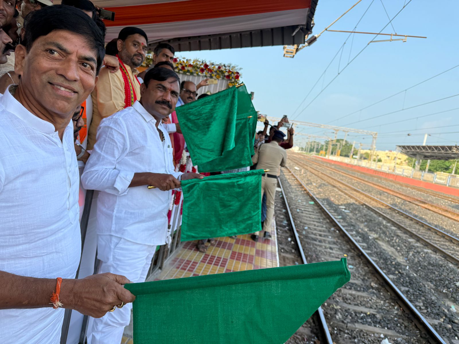 TGN NEWS (పటాన్ చేరు): సిర్పూర్ కాగజ్ నగర్ రైల్వే స్టేషన్లో వందే భారత్ రైలు నూతన స్టాప్ను ప్రారంభించారు. ఈ కార్యక్రమంలో స్థానిక ఎంపీ గూడెం నాగేష్, ఎమ్మెల్యే పాల్వాయి హరీష్ బాబు, ఉమ్మడి మెదక్–నిజాంబాద్–కరీంనగర్–ఆదిలాబాద్ పట్టభద్రుల ఎమ్మెల్సీ డాక్టర్ అంజి రెడ్డి పాల్గొన్నారు. ఈ సందర్భంగా ఎమ్మెల్సీ డాక్టర్ అంజి రెడ్డి మాట్లాడుతూ—